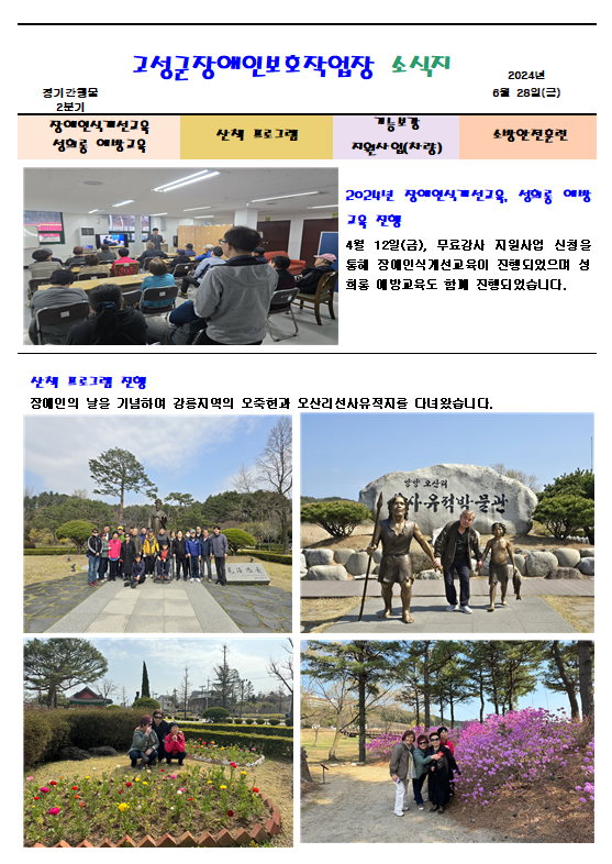 2분기 소식지 페이지 정보 작성자 고성군장애인보호작업장 작성일24-07-16 17:08 조회1,762회 댓글0건 이전글 다음글 목록 본문 2분기 동안 저희 고성군장애인보호작업장에서 진행했던 업무 일정을 공유합니다. 댓글목록 등록된 댓글이 없습니다. 이전글 다음글 목록